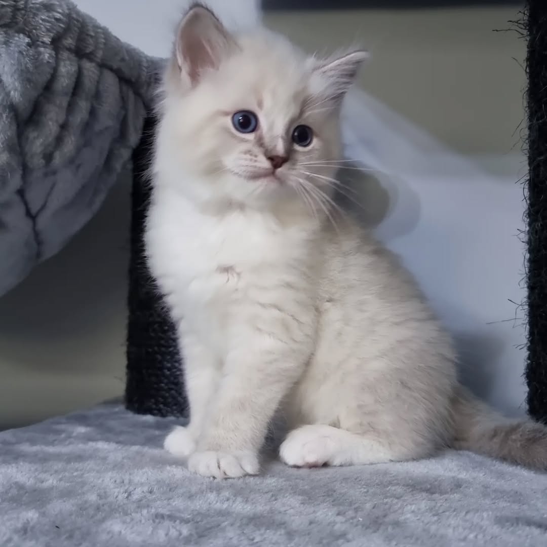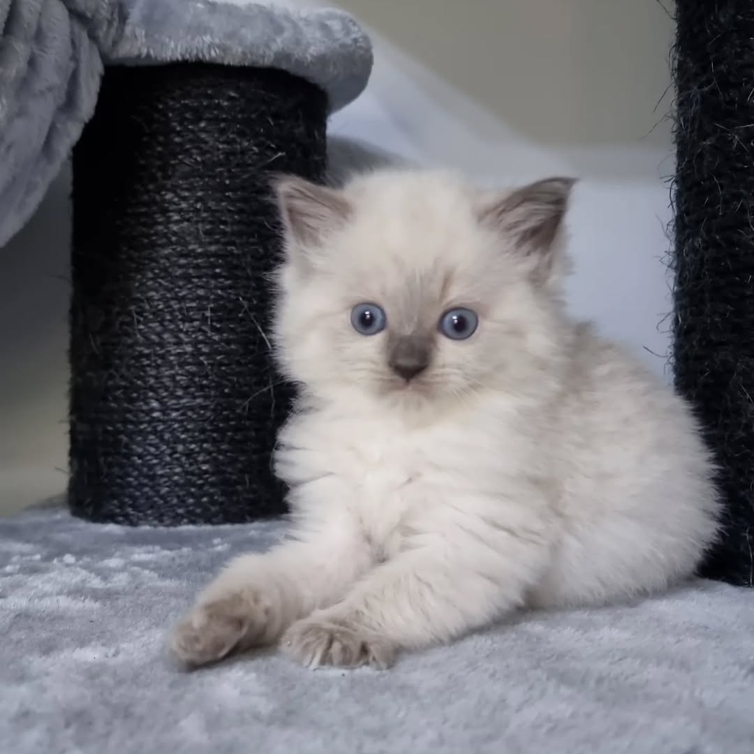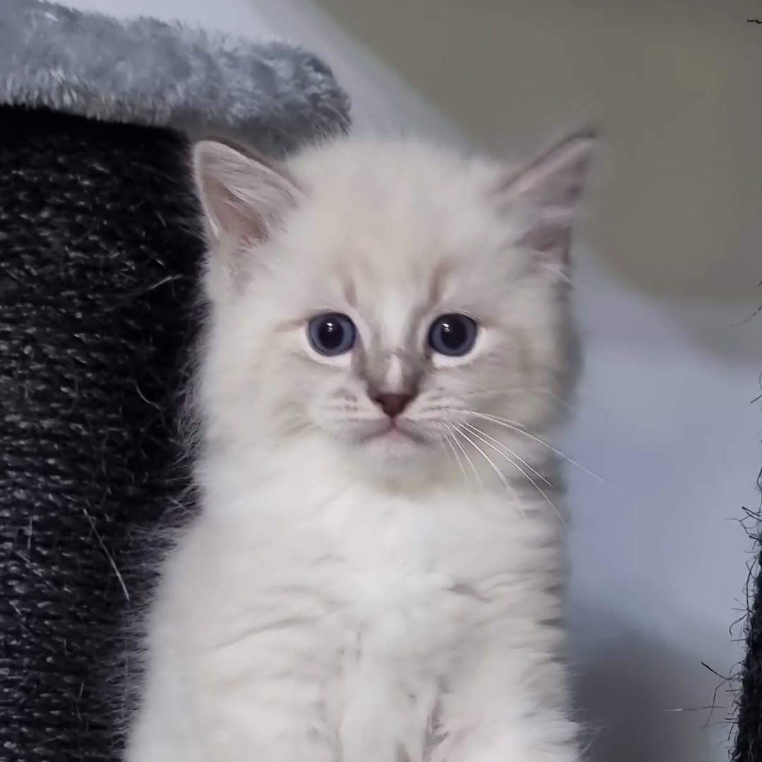 Perla ist ein bezauberndes männliches Ragdoll-Kätzchen, geboren am 20. August 2025. Mit seinem weichen Fell, seinen leuchtend blauen Augen und seinem liebevollen Wesen bringt er Weihnachtsfreude in jedes Zuhause.